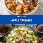 This classic Apple Crumble recipe features tart Granny Smith apples baked under a buttery, cinnamon-spiced crumble topping. Perfectly golden and bubbling fresh from the oven, it’s an easy and comforting dessert to enjoy warm with a scoop of vanilla ice cream or a dollop of whipped cream.
