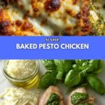 This Baked Pesto Chicken recipe features tender boneless chicken breasts topped with flavorful basil pesto and a blend of melted mozzarella and Parmesan cheeses. Baked to perfection and optionally broiled for a golden, bubbly finish, this Italian-inspired main course is quick to prepare and perfect for an easy dinner or meal prep.