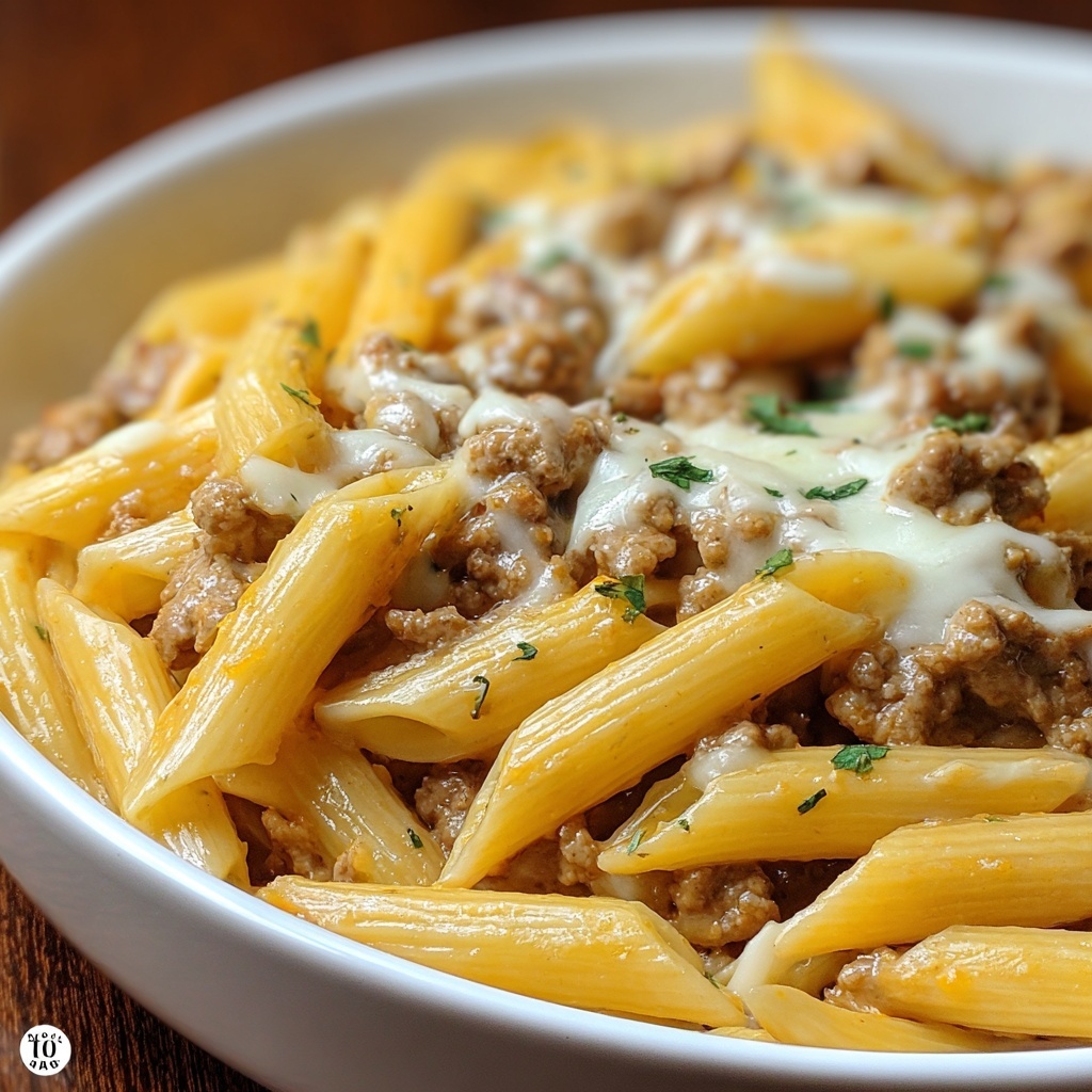How to Serve Cheesy Penne with Garlic Butter Ground Beef Recipe
