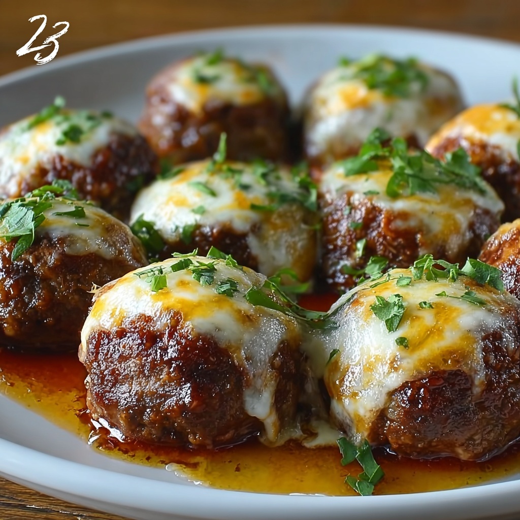 Delicious and easy-to-make Cheesy Stuffed Meatloaf Bites featuring juicy ground beef filled with melted mozzarella cheese, seasoned with garlic and onion powder, baked to perfection, and garnished with fresh parsley. Perfect as a savory appetizer or snack for any occasion.