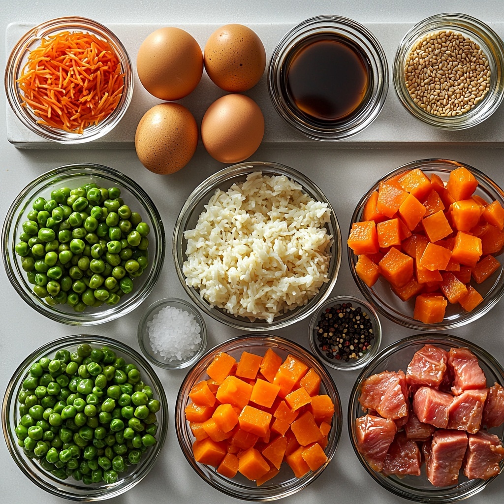 The magic of this Chicken Fried Rice Recipe lies in its simple yet essential ingredients. Each component plays a key role: the crisp veggies add texture and sweetness, the chicken brings savory richness, and the sauces tie everything together with umami-packed flavor. Here’s what you’ll need to make this dish shine.