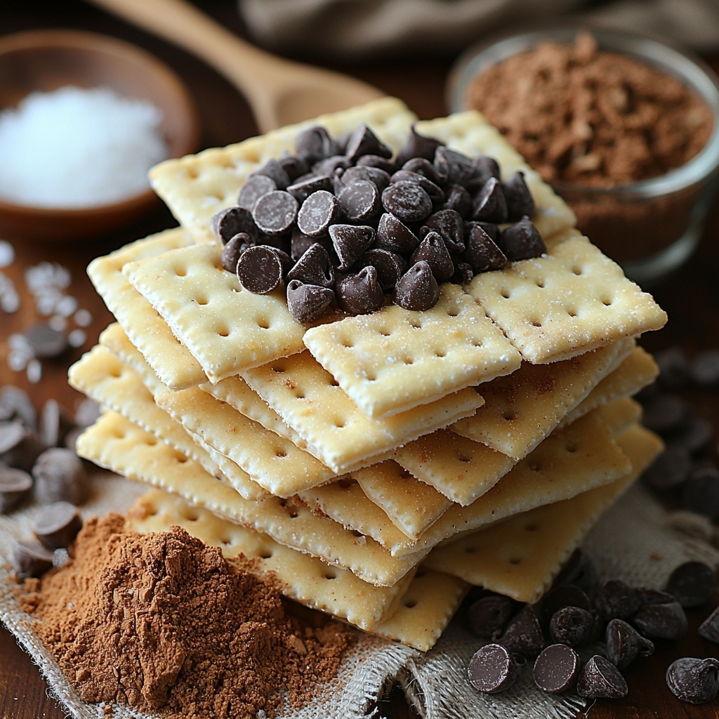 • Semi-sweet chocolate chips: Melt on top to add creamy, melty richness that balances the crunchy crackers.