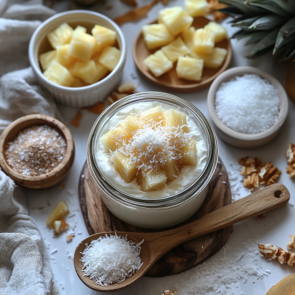 For the best balance, stick with plain yogurt so the pineapple and coconut shine through without competing flavors. Flavored yogurts may alter the intended taste.