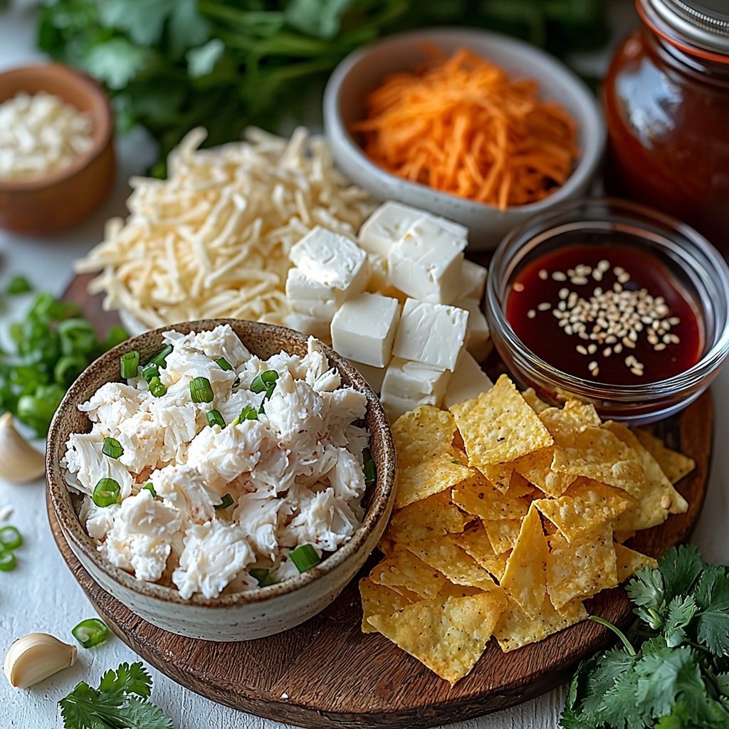Getting started with this Crab Rangoon Nachos Recipe is a breeze thanks to a handful of simple ingredients, each playing a vital role in the dish’s vibrant taste, creamy texture, and visually inviting presentation. From fresh lump crab meat to flavorful sauces and crunchy chips, every component brings something special to the table.