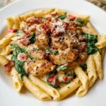 Sliced chicken and crumbled bacon are gently folded into the creamy spinach and tomato sauce. Then, toss in your drained penne pasta, stirring to coat every piece in that dreamy sauce. This is where the flavors and textures meld spectacularly, and the pasta absorbs all those savory, creamy notes.