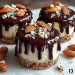 - Add toppings: Drizzle the melted chocolate evenly over the frozen yogurt coins, then sprinkle the chopped almonds on top to add a crunchy texture and nutty flavor.