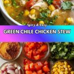A hearty and flavorful Green Chile Chicken Stew featuring tender chicken thighs simmered with green chilies, corn, tomatoes, and aromatic spices. Perfect for a comforting meal with a mild spicy kick and fresh cilantro garnish.