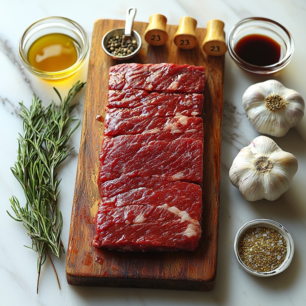 - 1 1/2 pounds flank steak: Choose a fresh cut for optimal tenderness and flavor absorption.