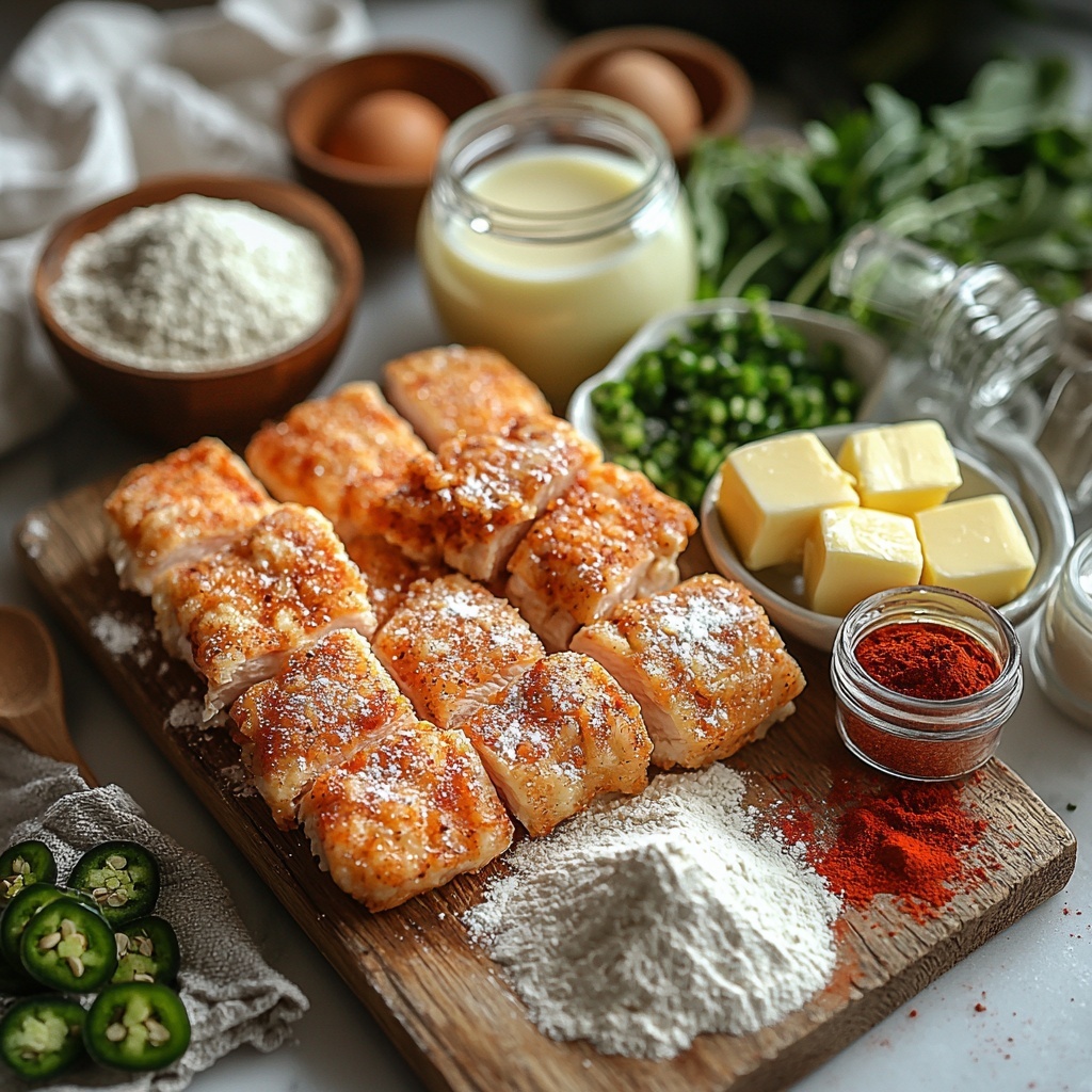 Gathering the right ingredients is key to making this recipe truly spectacular. Each item plays a distinct role, whether it’s creating a golden crust on the chicken, fluffy and flavorful waffles, or a luscious, spicy-sweet sauce that ties everything together beautifully.