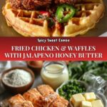 This Homemade Fried Chicken ‘n’ Waffles recipe pairs crispy, perfectly seasoned fried chicken thighs with fluffy waffles and a spicy-sweet jalapeno honey butter sauce. Marinated chicken ensures juicy flavor, while the waffle batter is light and slightly sweet. The jalapeno honey butter sauce adds a smoky heat to balance the dish, making it a delightful twist on a classic comfort food combo perfect for brunch or dinner.