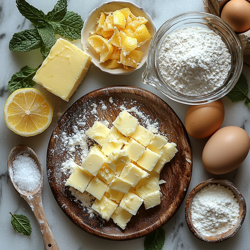 The magic of this Lemon Bars with Shortbread Crust Recipe lies in its straightforward ingredients. Each one plays a crucial role—from creating the buttery crust that holds everything together, to the zesty lemon filling that gives it that irresistible tang and brightness. Here’s what you’ll need to gather: