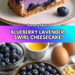 - Assemble the Cheesecake: Pour the cheesecake filling over the cooled crust. Spoon dollops of the blueberry lavender compote over the filling, then gently swirl it in with a knife or skewer to create a marbled effect.